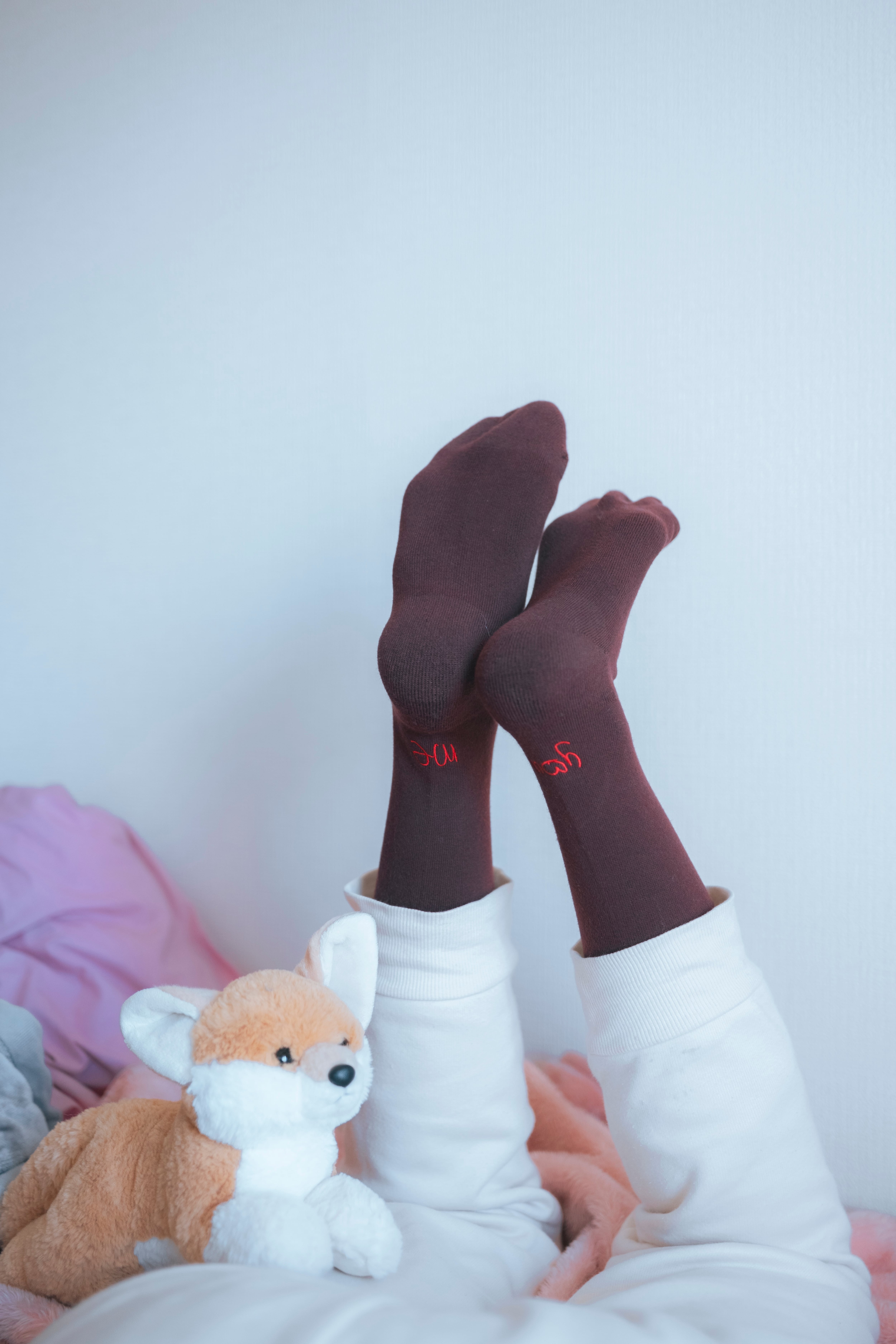 左足にはme。右足にはyou。me and youのロゴをあしらった、ふかっとした厚みのある生地があたたかな靴下をつくりました。コーディネートの差し色にもなるマホガニーブラウン。赤い刺繍がちらりと足首に見え隠れ。散歩はいつだって、わたしたちの生活にいい風を吹かせます。わたしとあなたでどこまで歩いていく?
